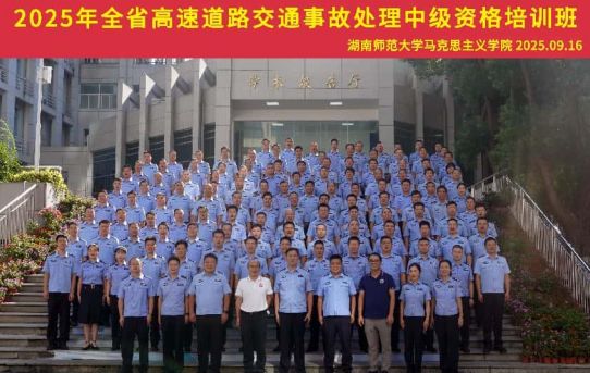 9月16日上午,由湖南省公安厅交通管理总队高速公路交通管理一支队主办、学院承办的2025年全省高速道路交通事故处理中级资格培训班,在湖南师范大学学术报告厅隆重举行。湖南省公安厅交管总队高速一支队政委杨秋实、副支队长姚鹏、案件侦办大队大队长周映君、学院党委书记李泳波出席开班仪式。来自全省各高速支队事故处理岗位的120余名骨干民警参训,开班仪式由姚鹏副支队长主持。